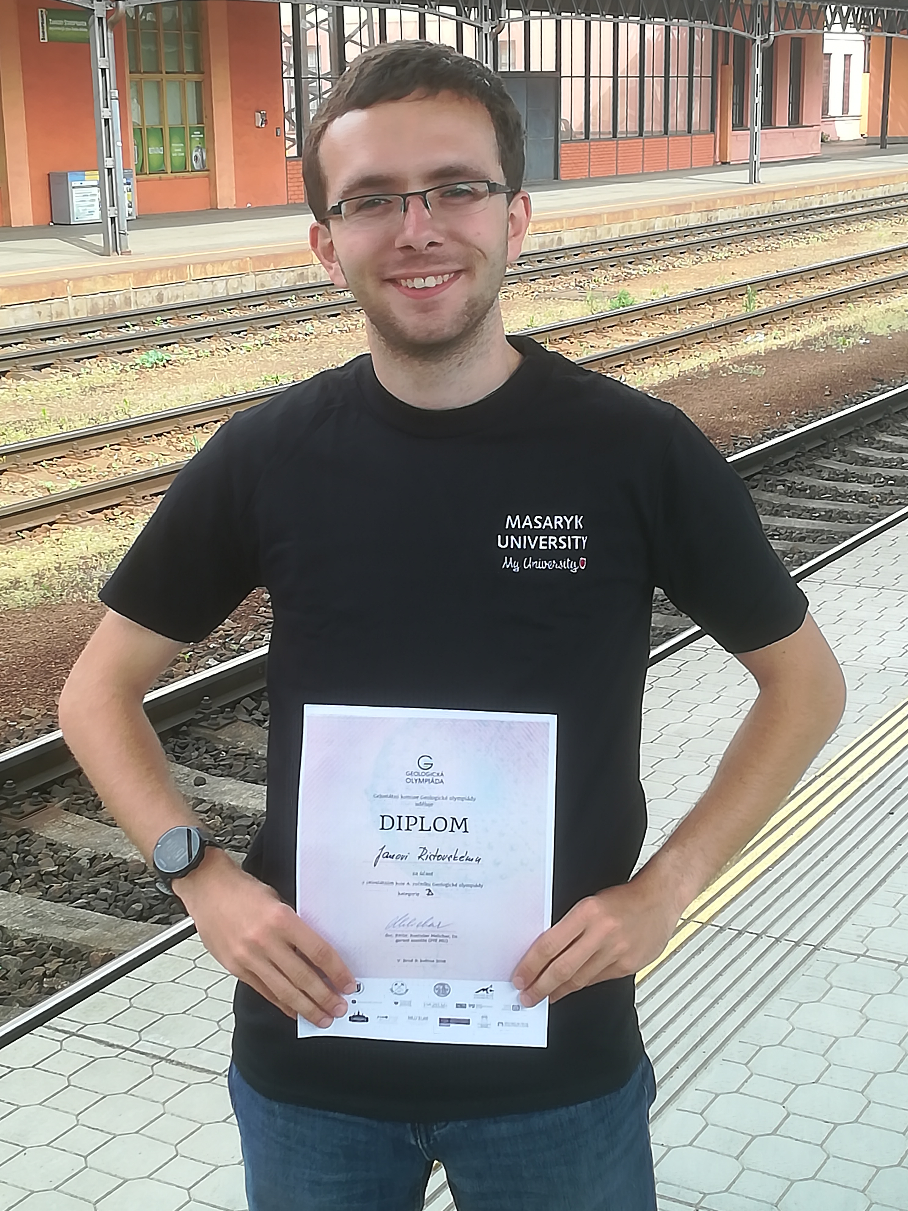 Minulý týden proběhlo celostátní kolo Geologické olympiády. Zatím jediným nadšencem z naší školy, který se tomuto oboru věnuje je Honza Ristovský. Ten letos obhájil loňské vítězství v krajském kole a opět postoupil do kola celostátního. To se tentokrát konalo na půdě Přírodovědecké fakulty Masarykovy university v Brně. Na soutěžící bylo připraveno množství záludných otázek, praktické poznávání hornin i nerostů a za odměnu závěrečný grilovací raut pod širým nebem v zahradě fakulty. 😉 Honza obstál se ctí a v nabité konkurenci, kde všichni soutěžící měli více než polovinu bodů, obsadil 13.místo. Držíme palce do dalšího ročníku.
